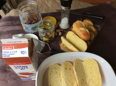 In a bowl, mix the creamy milk, syrup, eggs, salt, cinnamon, and nutmeg. Pour into the baking dish over the prepared brioche.