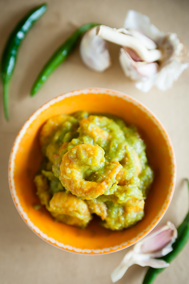 A typical jhinga nu achar (prawn pickle) is made with red dry chillies, similar to the Tarapori Patyo. This Leeloo Balsaun is made of green chillies (as the name suggests) and lemon pickle. A wonderful condiment is an old family recipe that has been enjoyed by many generations.