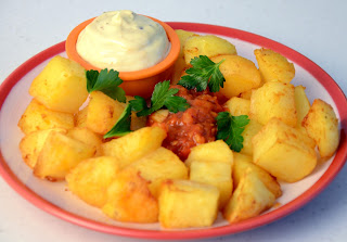 | Fried Potatoes with Spicy Salsa and Mayo ~ Batatas Bravas |