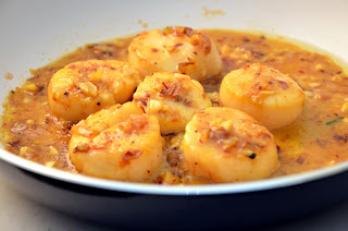 | Scallops in Rioja Wine with Saffron ~ Vieiras en Rioja y Azafran |