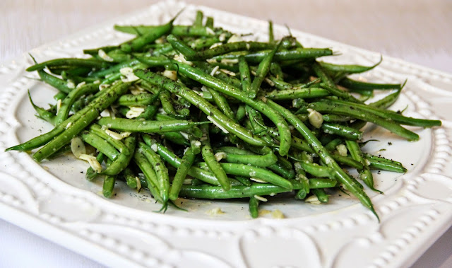 | Tossed green beans with garlic and olive oil. |