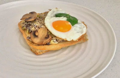 Melange of Mushroom and Spinach topped with eggs